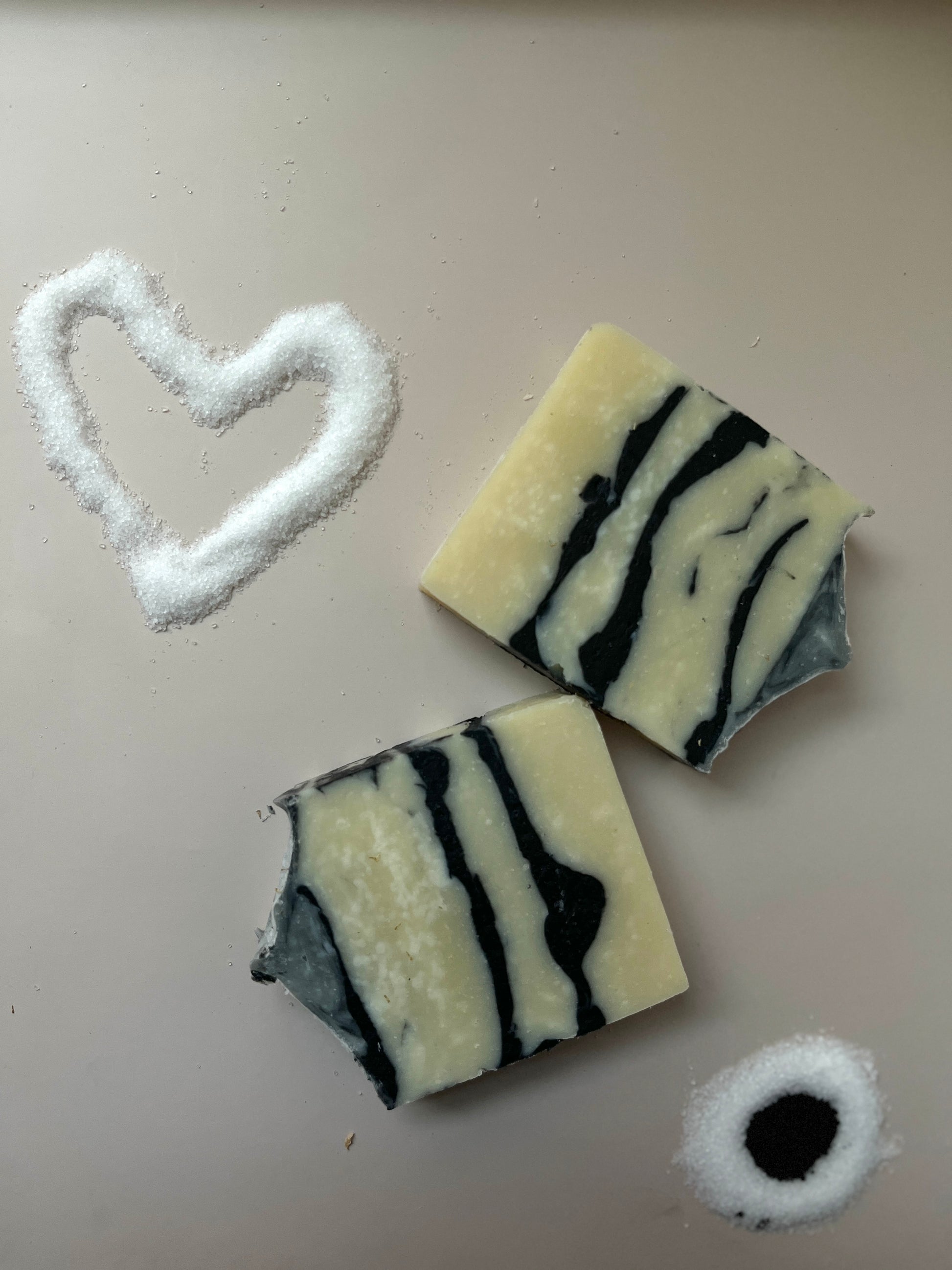 Ingredients: Water, Shea Butter, Cocoa Butter, Sea Salt, Activated Charcoal, Sodium Hydroxide, Castor Oil, Avocado Oil, Sweet Almond Oil and Tea Tree Oil.